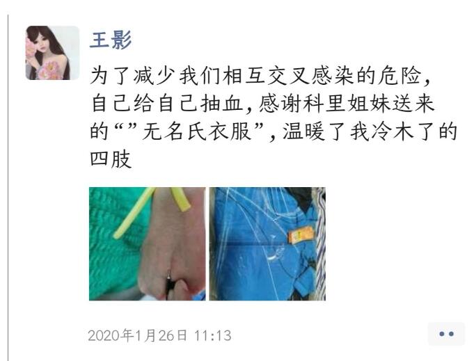 在抗擊武漢肺炎面前,各個(gè)醫(yī)院甚至全國都物資緊缺,負(fù)責(zé)分診的兄弟姐妹們,為了節(jié)省口罩、帽子、防護(hù)衣,一個(gè)上午不喝水不上廁所,因?yàn)樯弦淮螏托韪鼡Q一件防護(hù)衣……更有甚者,甚至用治療巾把衣領(lǐng)遮起來,這樣可以減少污染……