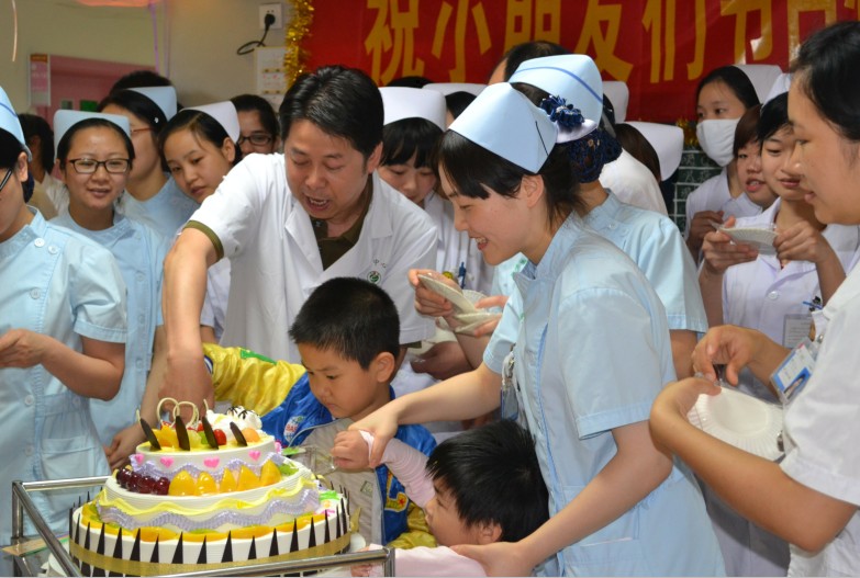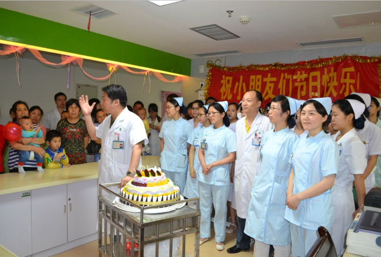 六一,歡樂(lè)的兒科病房 發(fā)布時(shí)間:2013年6月6日 預(yù)覽:3006次 “親愛(ài)的小朋友們,今天是一年一度的六一兒童節(jié),首先請(qǐng)?jiān)试S我代表衡陽(yáng)市中心醫(yī)院、兒科全體醫(yī)務(wù)人員向小朋友們致以節(jié)日的祝賀,祝大家節(jié)日快樂(lè),健康成長(zhǎng)!”6月1日早上七點(diǎn)四十分許,窗外陽(yáng)光明媚,我院婦兒中心兒科病房彩球高掛,彩帶飛揚(yáng),大家在護(hù)士站前隆重集會(huì),共同慶祝第64個(gè)國(guó)際兒童節(jié)。祝平照主任接著說(shuō)道:“我們兒科去年八月從院本部搬遷至華新婦兒中心,是我院‘大???,小綜合’的試點(diǎn)窗口,硬件設(shè)施和就醫(yī)環(huán)境的顯著改善給病人帶來(lái)實(shí)惠,也將激勵(lì)我們每一位醫(yī)務(wù)人員開(kāi)拓創(chuàng)新,建設(shè)好新形勢(shì)下的‘兒童醫(yī)學(xué)中心’,以獨(dú)特的品牌和區(qū)位優(yōu)勢(shì)輻射周邊群眾。我們將一如既往秉承‘醫(yī)者父母心’的優(yōu)良傳統(tǒng),努力提高醫(yī)療服務(wù)水平,為更多家庭送去健康,重建歡樂(lè)?!?BR> 熱烈的掌聲過(guò)后,祝平照主任邀請(qǐng)兩位小患者為大家分切蛋糕,并親手分發(fā)到每一個(gè)孩子的手中。一位患兒家屬感激地說(shuō)道:“祝主任,感謝你們,你們有心了。你們不僅是治病救人的好醫(yī)生還給我孫子過(guò)節(jié),我代表我們?nèi)腋兄x你們,謝謝啦!”樸素的話語(yǔ)回蕩在這個(gè)情景交融的溫馨場(chǎng)面里,化作一股動(dòng)力,激勵(lì)著每一個(gè)醫(yī)務(wù)人員。另外,為了確保當(dāng)日活動(dòng)的順利進(jìn)行,不影響正常醫(yī)療工作地開(kāi)展,在張小佛主任和羅淑君護(hù)士長(zhǎng)的率領(lǐng)下,全體醫(yī)護(hù)人員主動(dòng)提前到崗,并借由查房之機(jī)把深切關(guān)懷和慰問(wèn)連同節(jié)日禮物一并送到了小朋友們的床頭。 (王 旋)