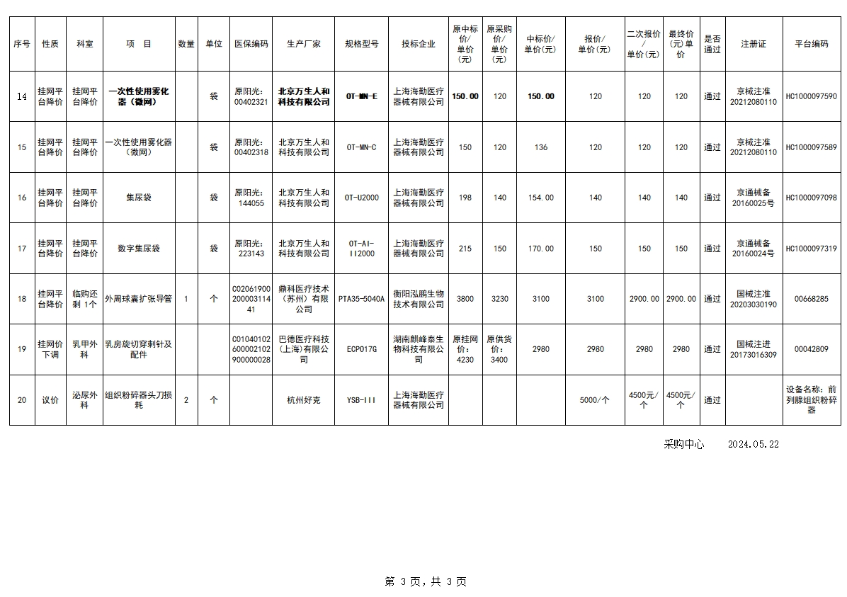 衡陽市中心醫(yī)院2024.05.22臨購議價(jià)結(jié)果公示