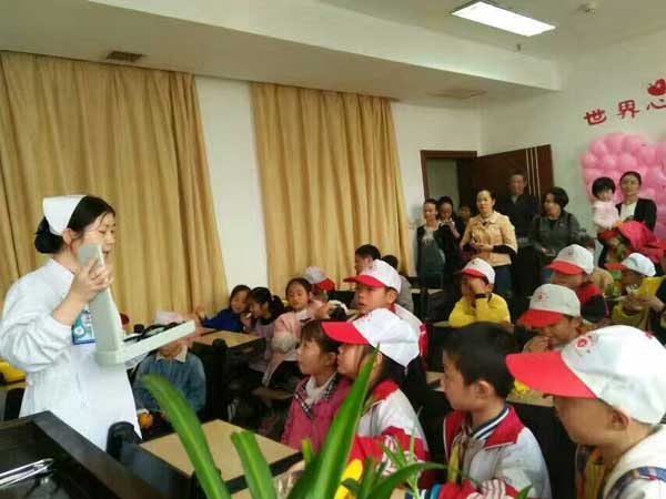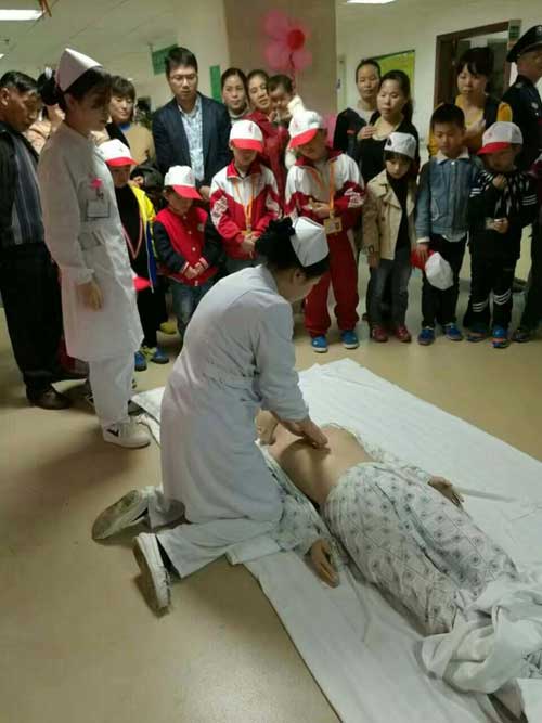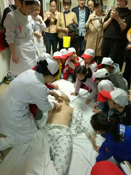 抓住心梗突發(fā)救治“黃金120分鐘” 發(fā)布時間:2016年11月25日 預覽:2611次 中國心梗日,晚報小記者走進衡陽市中心醫(yī)院心血管內科感受生命接力 “面對生命,我們必須爭分奪秒?!?9日下午,在第三個中國心梗日來臨之際,為讓心梗突發(fā)急救知識普及到千家萬戶,來自全市各校的25名晚報小記者們來到衡陽市中心醫(yī)院心血管內科,參加該院組織的“中國心梗日——體驗心梗急救”公益活動。該院心血管內科醫(yī)護人員為小記者們及其家長講解急救方面的相關知識,并進行心肺復蘇模擬技能體驗。 在醫(yī)護人員帶領下,小記者們認真聆聽了該院心內科柏太柱、朱曉宇等專家關于心梗突發(fā)及急救等健康知識講座,專家們通俗易懂的講解,讓小記者們對心梗知識有了更深入的了解,意識到了心臟對生命延續(xù)的重要性。 隨后,心血管內科倪淑英、劉蕓、周景衡、丁文婕等護理專家現(xiàn)場進行了心梗突發(fā)治救黃金120分鐘的“心肺復蘇”模擬演示。她們分步驟講解,詳細展示了在突發(fā)狀況下爭分奪秒地搶救生命的技巧,并邀請小記者進行互動,“手把手”地指導正確的按壓部位,操作方法以及按壓力度。通過醫(yī)護人員手把手地示范,點對點地操作,小記者們都已經(jīng)很清楚地了解了急救步驟、應急措施,能做到一邊呼救,一邊熟練地清除患者呼吸道異物,打開氣道,施行人工呼吸及完成胸外心臟按壓,儼然成為一個個小急救員。 市中心醫(yī)院心血管內科主任柏太柱主任醫(yī)師在接受采訪時稱:“我們非常歡迎衡陽晚報小記者們到我們心內科進行學習采訪。他們平時都是班級甚至學校里的佼佼者,他們多才多藝、對知識的向往,也激發(fā)了我們作為一名基層醫(yī)務工作者更好地為群眾的健康生活保駕護航的信心和決心?!?BR> 活動結束,隨行家長紛紛表示,很感謝市中心醫(yī)院精心準備的這次校外課堂,不僅讓孩子們通過試聽、互動等形式認識到了生命的寶貴,自己在這個過程中對對心梗家庭急救知識也有了更更深入的了解,提升了自救、家庭急救與預防風險的意識。