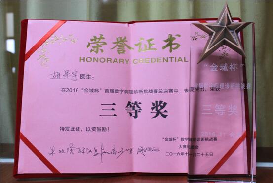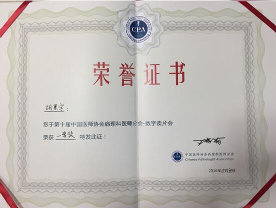 胡果宇榮獲第十屆中國(guó)病理醫(yī)師年會(huì)數(shù)字讀片比賽一等獎(jiǎng) 發(fā)布時(shí)間:2016年12月1日 預(yù)覽:2423次 近日,第十屆中國(guó)病理醫(yī)師年會(huì)上傳來(lái)喜訊,我院病理科副主任胡果宇榮獲中國(guó)醫(yī)師協(xié)會(huì)病理醫(yī)師分會(huì)數(shù)字讀片會(huì)比賽一等獎(jiǎng)。2016“金域杯”首屆數(shù)字病理診斷挑戰(zhàn)賽上,胡果宇又以華中賽區(qū)第一名的好成績(jī)?nèi)雵珖?guó)六強(qiáng)。11月25日,經(jīng)過(guò)激烈角逐,胡果宇最終在總決賽上榮獲了三等獎(jiǎng)。 據(jù)悉,胡果宇副主任醫(yī)師從事臨床病理診斷近十年,具有扎實(shí)的基本功和敏銳的觀察力,主要在組織學(xué)、細(xì)胞學(xué)病理尤其是腫瘤病理的診斷上頗有所長(zhǎng)。 (王穎超)