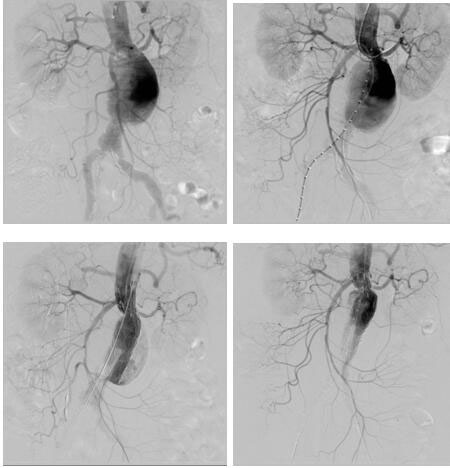 血管介入科完成我院首例腎下復(fù)雜型腹主動脈瘤腔內(nèi)修復(fù) 發(fā)布時間:2018年1月10日 預(yù)覽:1799次 日前,血管介入科為一位患腎下復(fù)雜型腹主動脈瘤(左腎動脈距離瘤體僅4mm)74歲老年女性完成腎動脈煙囪+腹主動脈瘤覆膜支架腔內(nèi)隔絕術(shù),術(shù)后恢復(fù)良好。該患者基礎(chǔ)疾病多,已經(jīng)出現(xiàn)腹痛癥狀,腹主動脈瘤瘤體隨時有破裂風(fēng)險,但左腎動脈距離瘤體僅4mm,采取傳統(tǒng)開放手術(shù)(腹主動脈瘤切除+Y型人工血管置換+左腎動脈轉(zhuǎn)流術(shù))手術(shù)創(chuàng)傷大,手術(shù)風(fēng)險高,經(jīng)血管外科治療團(tuán)隊(duì)反復(fù)研究病例,并在院領(lǐng)導(dǎo)支持下,決定采取腔內(nèi)治療:先經(jīng)肱動脈穿刺置鞘于左腎動脈留置導(dǎo)絲,再經(jīng)雙側(cè)股動脈上導(dǎo)絲導(dǎo)管造影定位,在施放腹主動脈主體支架前先經(jīng)左肱動脈留置導(dǎo)絲導(dǎo)引下于左腎動脈置入VIABAHN支架保證左腎動脈供血,再釋放腹主動脈主體支架,解決了左腎動脈距離瘤體過近的問題。該例手術(shù)的完成,標(biāo)志著我院在腹主動脈瘤的腔內(nèi)治療跨入省內(nèi)領(lǐng)先行列。