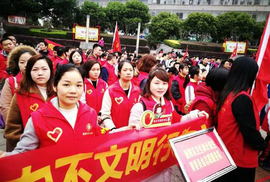上午八點,在衡陽市岳屏廣場,醫(yī)院16個支部黨員代表組成學(xué)雷鋒志愿服務(wù)隊,在副院長鄒建軍的帶領(lǐng)下,參加了"快樂志愿 春風撲面"之"向不文明行為說不"衡陽市"3•5”學(xué)雷鋒志愿服務(wù)活動啟動儀式。活動現(xiàn)場,志愿服務(wù)者身著印有"衡陽市中心醫(yī)院志愿者"的紅馬甲,佩戴"文明勸導(dǎo)員紅袖章",手拿"向不文明行為說不"的標志牌,高喊"學(xué)習雷鋒好榜樣,救死扶傷美名揚。守護健康,大愛無疆"的嘹亮口號,展示了醫(yī)務(wù)人員良好的精神氣貌。啟動儀式結(jié)束后,學(xué)雷鋒志愿服務(wù)隊在回醫(yī)院的途中,進行文明勸導(dǎo)活動,宣傳我市文明創(chuàng)建精神,分發(fā)文明手冊給市民。