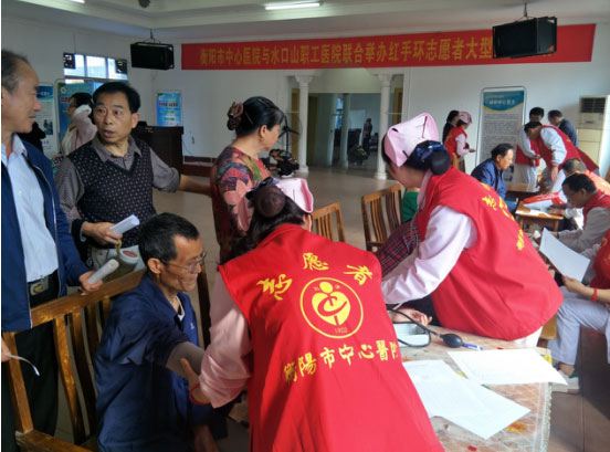 通訊員殷君發(fā)報道 4月21日,衡陽市中心醫(yī)院與水口山職工醫(yī)院聯(lián)合舉辦紅手環(huán)志愿者大型義診活動。為常寧市水口山鎮(zhèn)近200名居民提供義診、科普講座、健康宣教、疾病普查和專業(yè)咨詢服務(wù)。