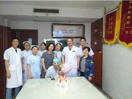 5月2日是汪老85歲的生日,這是他第一次在醫(yī)院過(guò)生日,譚曙光主任得知后立即和唐美容護(hù)士長(zhǎng)商議,給汪爺爺準(zhǔn)備了一個(gè)特別的生日會(huì)。并當(dāng)即訂了蛋糕,準(zhǔn)備鮮花,召集管床醫(yī)生及當(dāng)班的醫(yī)務(wù)人員陪伴汪爺爺過(guò)生日,送上一份祝福,汪爺爺臉上洋溢著幸福的笑容。