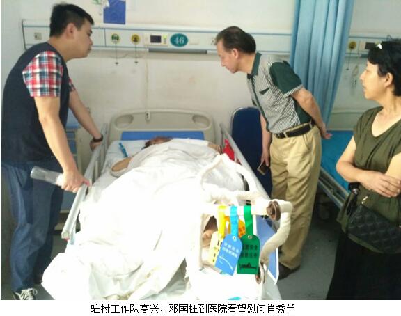 6月19日,我院駐村扶貧工作隊高興、鄧國柱、郭偉得知肥美村脫貧戶肖秀蘭意外摔傷,馬上向醫(yī)院黨委書記肖友儒匯報后,趕往某醫(yī)院看望肖秀蘭,了解傷勢和病情,請她到我院治療,并向她和女兒宣傳醫(yī)院健康扶貧優(yōu)惠政策,囑咐有事隨時聯(lián)系駐村工作隊,并送上了500元慰問金。(郭偉)
