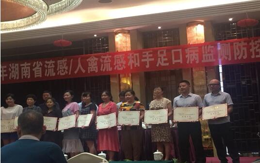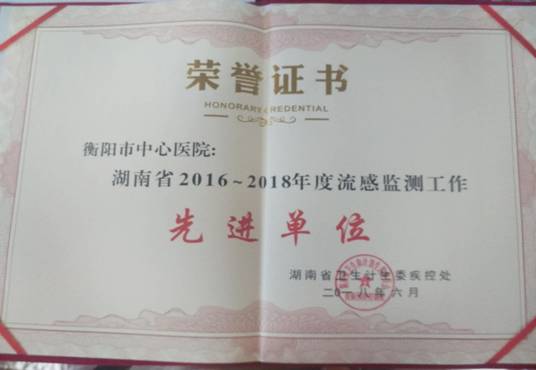 獲獎(jiǎng)喜訊 發(fā)布時(shí)間:2018年6月30日 預(yù)覽:2322次 通訊員許媛媛報(bào)道:2016年至2018年湖南省23家國(guó)家級(jí)流感監(jiān)測(cè)哨點(diǎn)醫(yī)院和15家網(wǎng)絡(luò)實(shí)驗(yàn)室在各級(jí)衛(wèi)生計(jì)生行政部門的領(lǐng)導(dǎo)下,認(rèn)真組織開展流感監(jiān)測(cè),及時(shí)報(bào)送有關(guān)信息,為我省科學(xué)研判流感、人感染H7N9流感的病毒變異及疫情趨勢(shì)發(fā)揮了重要作用。為樹立典型,弘揚(yáng)先進(jìn),湖南省衛(wèi)生計(jì)生委疾控處于6月25日在長(zhǎng)沙舉行“2016年至2018年全省流感監(jiān)測(cè)工作表彰大會(huì)”,我院被授予“湖南省2016—2018年度流感監(jiān)測(cè)工作先進(jìn)集體”,院感科陳瑛同志被授予“湖南省2016—2018年度流感監(jiān)測(cè)工作先進(jìn)個(gè)人”。