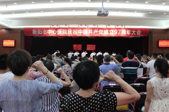 衡陽市中心醫(yī)院隆重慶祝建黨97周年 發(fā)布時(shí)間:2018年7月2日 預(yù)覽:2360次 通訊員唐冠群報(bào)道:為慶祝中國共產(chǎn)黨成立97周年,進(jìn)一步加強(qiáng)醫(yī)院黨支部及黨員隊(duì)伍建設(shè),激勵(lì)廣大黨員干部堅(jiān)定理想信念,激發(fā)全院黨員“不忘初心、牢記使命”的責(zé)任擔(dān)當(dāng),形成最強(qiáng)執(zhí)行、凝心聚力、積極向上的濃厚氛圍,6月29日,衡陽市中心醫(yī)院慶祝中國共產(chǎn)黨建黨97周年大會(huì)在莊嚴(yán)的國歌聲中隆重開幕。全體院黨委委員、全體在職黨員、退休支部支委近300人參加了會(huì)議,院黨委書記肖友儒發(fā)表講話并講黨課,院長、黨委副書記申惠龍主持會(huì)議。 黨委書記肖友儒代表醫(yī)院黨委,向堅(jiān)守在醫(yī)院各個(gè)崗位上的共產(chǎn)黨員以及離退休黨員同志致以節(jié)日的問候和崇高的敬意。他從進(jìn)一步增強(qiáng)黨性,堅(jiān)定政治立場、進(jìn)一步夯實(shí)基礎(chǔ),推進(jìn)醫(yī)院黨的建設(shè)、進(jìn)一步凝聚人心,推動(dòng)醫(yī)院“二次騰飛”三個(gè)方面發(fā)表了講話,深情緬懷了黨的光輝歷程,提出了落實(shí)從嚴(yán)治黨要求。他強(qiáng)調(diào),目前醫(yī)院領(lǐng)導(dǎo)班子同心同德,醫(yī)院外部環(huán)境比較寬松,醫(yī)院的戰(zhàn)略定位和發(fā)展思路切實(shí)可行,全院干部職工精神面貌奮發(fā)向上。面對可喜的發(fā)展大環(huán)境,全體共產(chǎn)黨員、全院干部職工要齊心協(xié)力,積極行動(dòng),奮發(fā)有為,努力工作,推動(dòng)醫(yī)院“二次騰飛”,并以《深刻理解、積極推進(jìn)“四個(gè)全面”戰(zhàn)略布局》為題,上了一堂生動(dòng)的黨課。 院長、黨委副書記申惠龍同志宣讀《關(guān)于表彰2017-2018年度優(yōu)秀黨支部、優(yōu)秀黨務(wù)干部和優(yōu)秀共產(chǎn)黨員的決定》,為5個(gè)優(yōu)秀黨支部、7個(gè)優(yōu)秀黨務(wù)干部、54個(gè)優(yōu)秀共產(chǎn)黨員頒發(fā)了獎(jiǎng)牌和榮譽(yù)證書。申惠龍希望受到表彰的黨支部、黨務(wù)干部和共產(chǎn)黨員,珍惜榮譽(yù),再接再厲,自覺發(fā)揮先鋒模范作用,不忘初心,牢記使命,為醫(yī)院發(fā)展再立新功。全體黨員要以先進(jìn)為榜樣,立足崗位,奮發(fā)有為,敢于擔(dān)當(dāng),甘于奉獻(xiàn),為實(shí)現(xiàn)醫(yī)院持續(xù)健康發(fā)展,推進(jìn)“健康衡陽”建設(shè)做出更大的貢獻(xiàn)。同時(shí),他提出,全體黨員及全院干部職工要認(rèn)真落實(shí)會(huì)議精神,切實(shí)抓緊醫(yī)院黨的建設(shè),扎實(shí)推動(dòng)醫(yī)院各項(xiàng)工作。 黨委委員、副院長鄒建軍同志帶領(lǐng)全體與會(huì)黨員在黨旗下重溫了《入黨誓詞》。會(huì)議在雄壯的《國際歌》聲中閉幕。 據(jù)悉,去年4月市中心醫(yī)院新一屆醫(yī)院黨委班子上任以來,深入貫徹黨中央全面從嚴(yán)治黨要求,認(rèn)真履行“兩個(gè)責(zé)任”,持續(xù)不懈抓緊院黨委自身建設(shè)和黨支部建設(shè),壓實(shí)了每個(gè)黨委成員的黨建責(zé)任,全面加強(qiáng)了黨的基層組織建設(shè),黨支部的戰(zhàn)斗堡壘作用、黨員的先鋒模范作用得到較好的發(fā)揮。下一步,院黨委將進(jìn)一步強(qiáng)化“四個(gè)意識(shí)”,堅(jiān)持高標(biāo)準(zhǔn)、嚴(yán)要求、抓基層、打基礎(chǔ),進(jìn)一步抓好黨建工作,發(fā)揮黨委的核心作用,強(qiáng)化黨委議大事、抓大事、謀大局、穩(wěn)大局的能力,有力保障醫(yī)院各項(xiàng)事業(yè)順利推進(jìn)。
