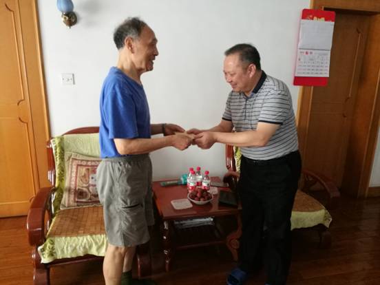 我院開展“七一”走訪慰問活動 發(fā)布時間:2018年7月3日 預(yù)覽:2279次 通訊員唐冠群報道:“七一”前夕,衡陽市中心醫(yī)院黨委組織開展走訪慰問活動。院領(lǐng)導(dǎo)帶領(lǐng)相關(guān)支部負(fù)責(zé)人深入老黨員、老干部、省勞模、困難黨員的家中,詳細(xì)詢問他們的生活和身體情況,送上慰問金和節(jié)日的問候,囑托他們保重身體,醫(yī)院將時刻關(guān)注大家,并竭盡所能為大家排憂解難。院領(lǐng)導(dǎo)們對他們?yōu)獒t(yī)院的奉獻(xiàn)與付出表示衷心的感謝,并殷切希望各位老黨員、老領(lǐng)導(dǎo)、老專家繼續(xù)關(guān)心關(guān)注醫(yī)院發(fā)展,為醫(yī)院更加美好的明天建言獻(xiàn)策、奉獻(xiàn)智慧!