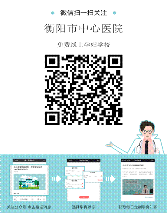 2.掃描二維碼,關(guān)注衡陽市中心醫(yī)院線上孕婦學(xué)校,讓你足不出戶,免費學(xué)習(xí)專業(yè)孕期知識,秒變智慧媽媽!還有中心醫(yī)院產(chǎn)科為大家準(zhǔn)備的孕期指導(dǎo)以及開課信息,為不能準(zhǔn)點聽課的媽媽提供專業(yè)指導(dǎo),為現(xiàn)場聽課的媽媽及時提供開課通知!