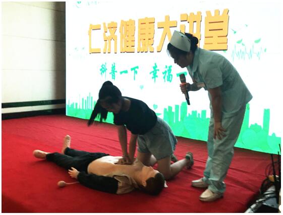 急救就在身邊,專家教您自救互救 發(fā)布時間:2018年8月8日 預(yù)覽:2521次 通訊員張永明報道:為增強(qiáng)市民自救互救意識,提高自救互救能力,8月3日,衡陽市中心醫(yī)院在院本部門診大廳開展了一場生動且實(shí)用的“名醫(yī)仁濟(jì)健康大講堂”急救急診知識普及教育活動。門診大廳座無虛席,還有不少站立者認(rèn)真旁聽,130余名市民在現(xiàn)場認(rèn)真聆聽了急救知識講座、觀看了急救示范并參與了互動。講座還通過微信同步直播,場外有近萬名網(wǎng)友通過直播在線聽課,并參與互動,收到了良好效果。 這次仁濟(jì)健康大講堂,由市中心醫(yī)院急危重癥中心主任兼急診醫(yī)學(xué)科主任、主任醫(yī)師歐陽茴香主講《急救就在身邊》。歐陽茴香主任以深入淺出、通俗易懂、圖文并茂的方式為市民闡述了自救、互救的重要意義。他在講座中提到,傷病員突發(fā)疾病的10分鐘搶救非常重要,“急救白金10分鐘”是指突遇心腦血管引發(fā)的心肌梗塞、心絞痛及溺水等傷病發(fā)生后的10分鐘,患者能否得到及時、正確的救治尤為關(guān)鍵。據(jù)相關(guān)部門統(tǒng)計,一般意外發(fā)生后的前10分鐘若得不到及時救治,患者死亡率將高達(dá)50%以上,這也正是向群眾普及急救知識的必要性所在,一旦大家都掌握了基礎(chǔ)的急救常識,則能極大提高醫(yī)務(wù)人員對患者救治的成功率。 據(jù)悉,衡陽市中心醫(yī)院1985年成立急診醫(yī)學(xué)科,2010年被國家衛(wèi)生部國際緊急救援中心認(rèn)定為“網(wǎng)絡(luò)醫(yī)院”,今年上半年相繼成立了胸痛、卒中中心,為急、危、重癥病人開辟綠色通道,依托院本部和華新分院的強(qiáng)大資源,急救網(wǎng)絡(luò)覆蓋雁峰區(qū)、蒸湘區(qū)、華新開發(fā)區(qū)3個區(qū)約70萬人口,實(shí)現(xiàn)了院前與院內(nèi)急救無縫銜接,對急性創(chuàng)傷、休克、昏迷、急性中毒、心腦血管急癥、各種急危重癥、心肺腦復(fù)蘇及突發(fā)公共衛(wèi)生事件等救治和監(jiān)護(hù)經(jīng)驗(yàn)豐富,有效提高了搶救各類急、危、重癥病人的成功率,為患者搭建起一條快捷、安全、高效的生命綠色通道,成為城市公共安全領(lǐng)域和綜合服務(wù)應(yīng)用的重要組成部分。 醫(yī)護(hù)人員急救示范 與市民急救互動
