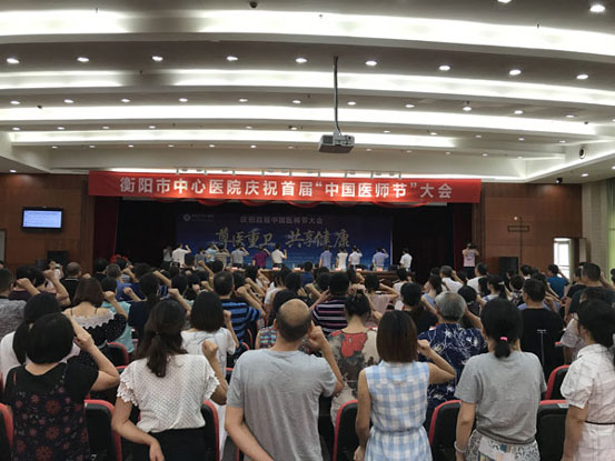 我院召開“首屆中國醫(yī)師節(jié)”慶祝大會(huì) 發(fā)布時(shí)間:2018年8月20日 預(yù)覽:2486次 通訊員陸昱霖報(bào)道:為慶祝首屆中國醫(yī)師節(jié),表彰從醫(yī)30周年醫(yī)師,慰問全院醫(yī)師,大力弘揚(yáng)“敬佑生命、救死扶傷、甘于奉獻(xiàn)、大愛無疆”的新時(shí)期職業(yè)精神,衡陽市中心醫(yī)院于8月17日下午在21樓大會(huì)議室召開“慶祝首屆中國醫(yī)師節(jié)”大會(huì)。院領(lǐng)導(dǎo)、中層干部、醫(yī)師共計(jì)300余人參加了大會(huì),市衛(wèi)計(jì)委副主任鄧玉生出席會(huì)議并講話,院長申惠龍為大會(huì)致辭,院黨委書記肖友儒主持大會(huì)。 市衛(wèi)計(jì)委副主任鄧玉生,談到了自己參加此次大會(huì)的幾點(diǎn)感想:一、醫(yī)師,作為人民健康的“守護(hù)人”,是推動(dòng)健康中國的主力軍,他們是值得全社會(huì)尊重的群體。二、隨著人們健康意識(shí)不斷加強(qiáng),人民群眾在就醫(yī)過程中對(duì)于醫(yī)生期望過高,導(dǎo)致醫(yī)師們常年處在高強(qiáng)度工作中,作為上級(jí)部門管理者應(yīng)該理解、關(guān)懷醫(yī)師,為醫(yī)師做好后盾和服務(wù)工作。三、衡陽市中心醫(yī)院有優(yōu)秀人才隊(duì)伍,中國好醫(yī)生柏太柱、湖南好醫(yī)生廖金文、衡陽好醫(yī)生劉軍,構(gòu)建了一個(gè)“好醫(yī)生”矩陣,為全市兄弟醫(yī)院起到了良好的示范帶頭作用,同時(shí)也希望中心醫(yī)院的醫(yī)師們繼續(xù)在工作中,做到“三心兩意”——仁愛之心、敬業(yè)之心、感恩之心、責(zé)任意識(shí)、奉獻(xiàn)意識(shí)。 院長申惠龍向全院醫(yī)師同志致以節(jié)日的問候,并在講話中提到,“中國醫(yī)師節(jié)”的設(shè)立,體現(xiàn)了黨中央對(duì)衛(wèi)生健康工作者的關(guān)懷和肯定,同時(shí)也是對(duì)醫(yī)師奮發(fā)向上、嚴(yán)以自律的激勵(lì)和鞭策。衡陽市中心醫(yī)院是一家有著光榮歷史的老院、名院,醫(yī)院的發(fā)展離不開一代代“仁濟(jì)”人的薪火相傳,希望醫(yī)院全體醫(yī)師在攀登醫(yī)學(xué)高峰、攻克疑難雜癥方面敢為人先,繼續(xù)取得突破。新班子上任以來,全院齊心聚力,在人才引進(jìn)、培養(yǎng),學(xué)科建設(shè),就醫(yī)環(huán)境等方面都取得了長足地進(jìn)步,在提高醫(yī)師經(jīng)濟(jì)待遇的同時(shí)積極努力為廣大醫(yī)師構(gòu)筑一個(gè)有尊嚴(yán)、有發(fā)展、有幸福感的職業(yè)環(huán)境。并寄語全體醫(yī)師,德才兼?zhèn)涞暮冕t(yī)師是群眾所需、社會(huì)所盼,醫(yī)師們?cè)诠ぷ髦幸龅街氐隆⒕g(shù)、勤研。 最后院黨委書記肖友儒感謝了全院醫(yī)師的付出和奉獻(xiàn),并勉勵(lì)全院醫(yī)生們踐行“敬佑生命、救死扶傷、甘于奉獻(xiàn),大愛無疆”十六字崇高精神在以后的工作中常懷感恩之心、敬業(yè)之心、惻隱之心、自律之心。 此次大會(huì)上,副院長劉小平宣讀了衡陽市中心醫(yī)院從醫(yī)30年以上專家名單,全體院領(lǐng)導(dǎo)為從醫(yī)30年以上專家頒發(fā)獎(jiǎng)杯。院長申惠龍帶領(lǐng)全體人員重溫醫(yī)生誓言,“衡陽好醫(yī)生”劉軍作為醫(yī)師代表也上臺(tái)做了發(fā)言。