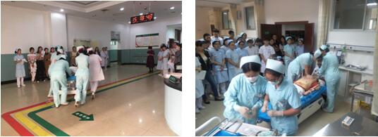現(xiàn)場演練時李醫(yī)師帶領(lǐng)團隊:就如何分診;如何與搶救護士交接;如何進行??凭戎?;突發(fā)心跳呼吸驟停時,如何進行團隊配合搶救;復(fù)蘇成功后,如何進行高級生命支持治療進行了教學(xué)模擬演練。整個演練角色投入、分工明確、緊張有序、搶救得當,體現(xiàn)了急診科的綜合處理應(yīng)急能力。