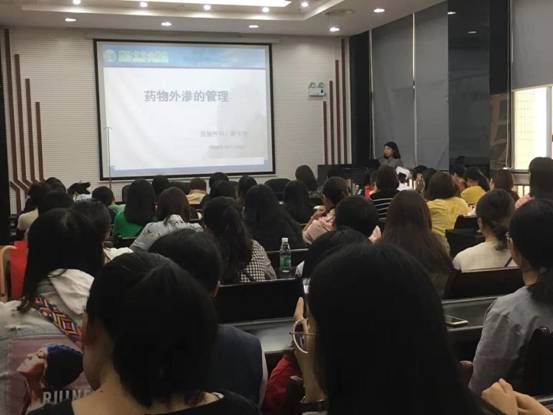 守護(hù)針尖上的安全,你我同行 發(fā)布時(shí)間:2018年10月16日 11:40:25 預(yù)覽:2380次 通訊員肖志喜報(bào)道:靜脈輸液是臨床治療中常用的治療手段,為了提高我院靜脈治療水平,靜療小組積極提高業(yè)務(wù)能力和輸液安全管理能力,并帶動(dòng)全院輸液治療更加規(guī)范化、科學(xué)化,從而為患者提供安全、有效的靜脈治療。 10月10日下午三點(diǎn),我院靜療專科小組第四季度的培訓(xùn)在華新分院15樓會(huì)議室舉行。護(hù)理部副主任楊柳、護(hù)理總帶教羅明慧老師、各科護(hù)士長(zhǎng)、各科室靜療??菩〗M聯(lián)絡(luò)員參加了此次培訓(xùn)活動(dòng),培訓(xùn)由靜療小組組長(zhǎng)李小敏護(hù)士長(zhǎng)主持。 此次培訓(xùn)分為理論講解和操作示范兩部分。課上,唐美容護(hù)士長(zhǎng)就藥物外滲的原因、表現(xiàn)、處理及預(yù)防進(jìn)行了深入淺出的講解,課堂氣氛活躍,現(xiàn)場(chǎng)積極互動(dòng)。隨后,泌尿外科護(hù)士李瑯用情景模擬的方法現(xiàn)場(chǎng)演示了留置針的規(guī)范操作,并對(duì)大家的提問(wèn)給予詳細(xì)解答和示范。 最后,羅明慧老師總結(jié)了在靜脈治療操作中護(hù)士應(yīng)掌握的要點(diǎn)及各個(gè)細(xì)節(jié),進(jìn)一步提高輸液治療水平,保障患者安全。 通過(guò)此次培訓(xùn),大家對(duì)藥物外滲的管理有了更深刻的認(rèn)識(shí),對(duì)靜脈治療操作技術(shù)的規(guī)范有了新的正確理解,也體會(huì)到了操作中細(xì)節(jié)的重要性。學(xué)以致用,在提高自己業(yè)務(wù)能力的同時(shí),為患者提供更安全、有效的護(hù)理服務(wù)。