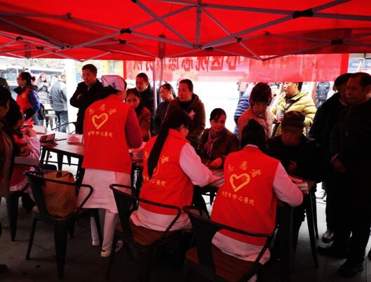 國際志愿者日,市中心醫(yī)院開展義診活動(dòng) 發(fā)布時(shí)間:2018年12月07日 10:36:36 預(yù)覽:2237次 通訊員何燕、龍開云報(bào)道:2018年12月5日,國際志愿者日,衡陽市中心醫(yī)院團(tuán)委組織心內(nèi)科徐睫、內(nèi)分泌科吳俊靈、兒科胡俊喜等7名專家志愿者聯(lián)合沿江社區(qū)走進(jìn)衡陽市民俗文化廣場(chǎng)開展義診服務(wù)。 上午9點(diǎn),專家志愿者們不畏嚴(yán)寒、冒著蒙蒙細(xì)雨抵達(dá)目的地,當(dāng)時(shí)已聚集很多市民。專家志愿者們馬上進(jìn)入工作狀態(tài),熱情地接待每一位市民,為他們測(cè)血糖、量血壓以及進(jìn)行健康咨詢、答疑解惑等。志愿者們看到前來問診的市民臉上洋溢的幸福,心里倍感欣慰,并表示今后將盡自己的微薄之力服務(wù)更多的老百姓。 據(jù)了解。本次活動(dòng)共義診80余人,免費(fèi)為50多位市民測(cè)量了血糖、血壓,發(fā)放健康宣傳冊(cè)40余本。